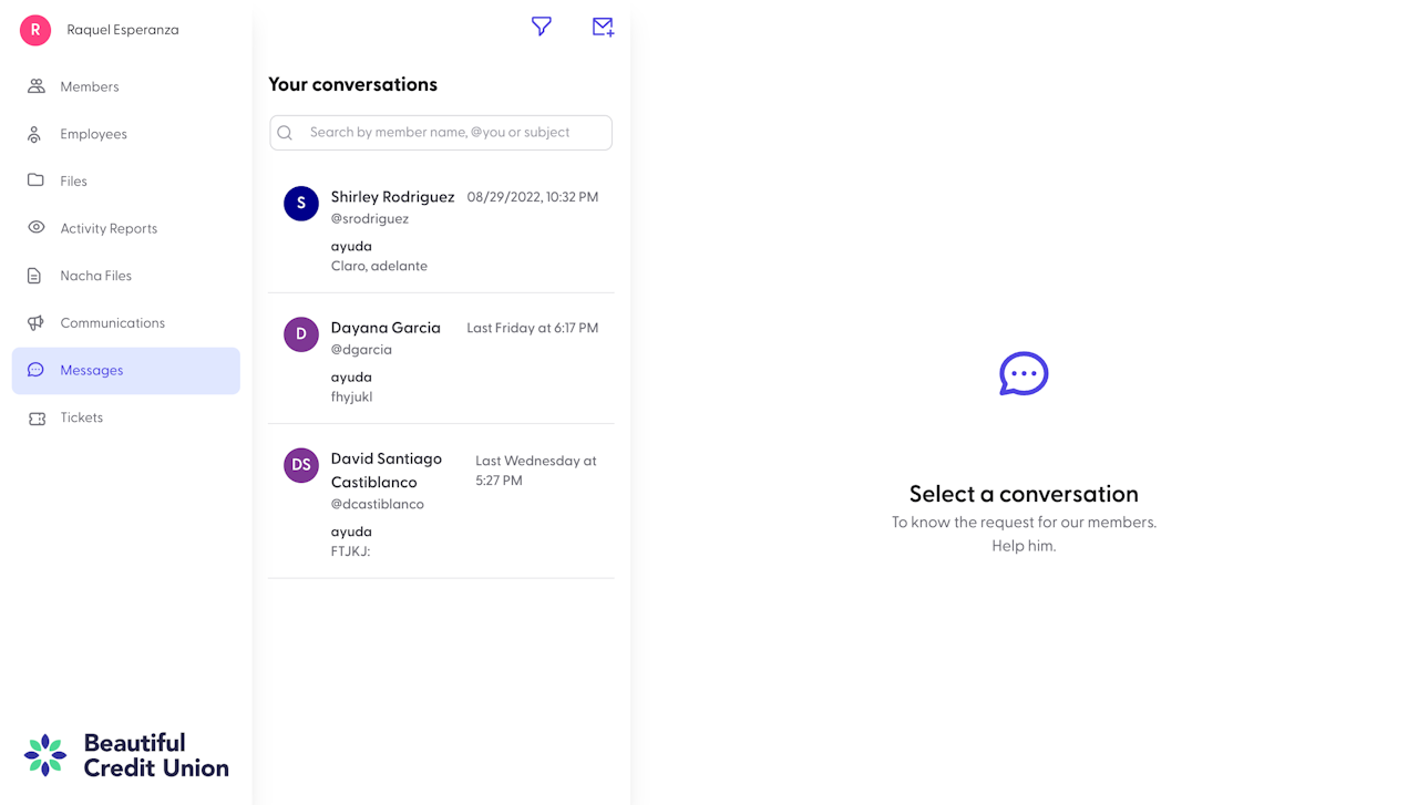 The messages section is your online banking inbox where you can create and manage all of your direct communications with members.