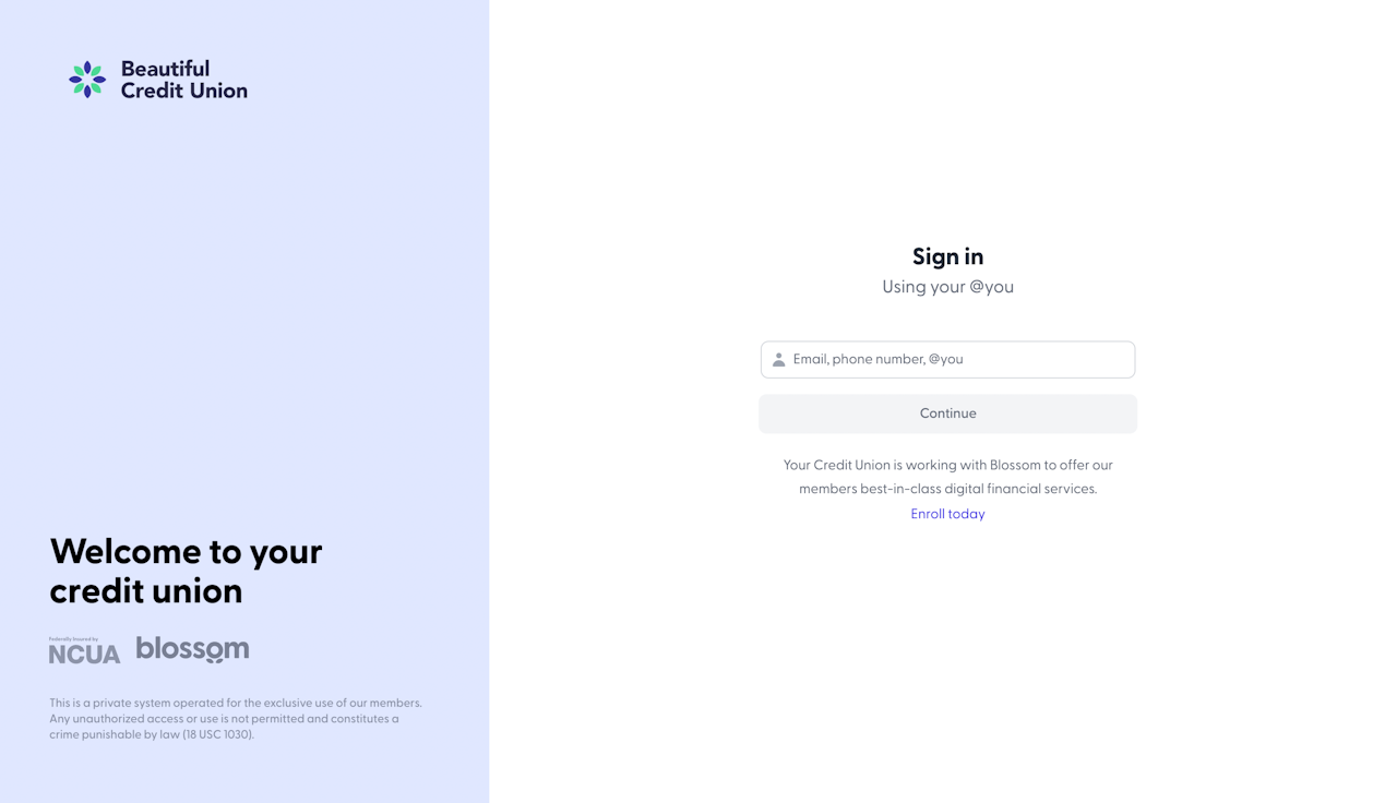 On the “Sign in” page you’ll see a bar where you can enter your email, phone number or @you to start the login process.